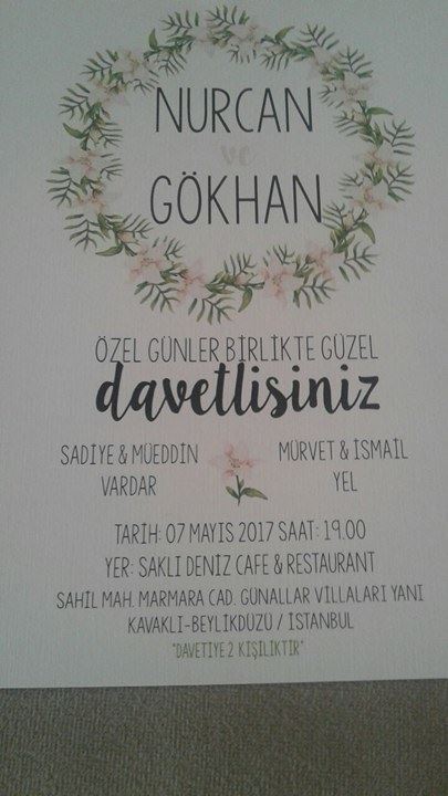 Düğün HaberleriKüçükyayla Haber Düğüne Davet (İsmail Yel Oğlu Gökhan ve Nurcan) Yazar admin - 5 Mayıs 2017 0 248 FacebookTwitterPinterestWhatsAppEmailYazdır Köyümüz Halkından İsmail Yel’in oğlu Gökhan ve Nurcan’ın düğün törenleri 07 Mayıs 2017 Pazar Günü Saklı Deniz Kafe İstanbul adresinde yapılacaktır. Düğüne tüm Köy halkımız ve Küçükyaylalılar Derneği Üyeleri davetlidir.