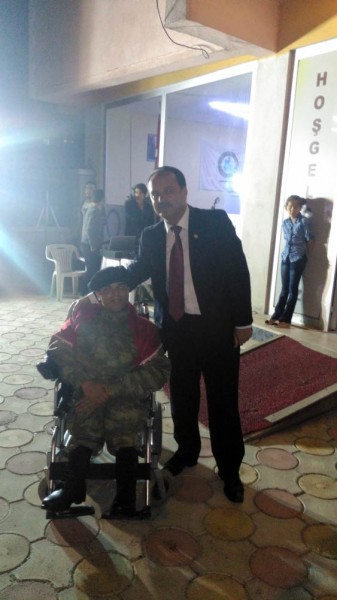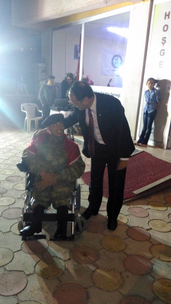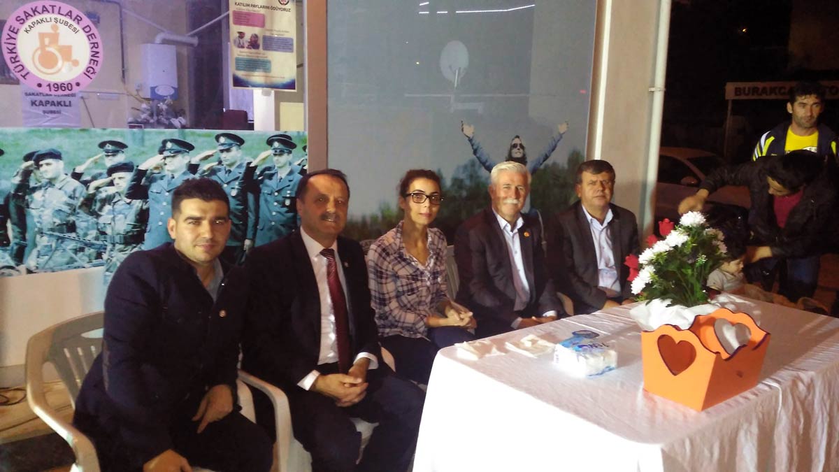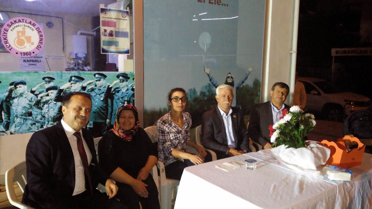 Kapaklı Sakatlar Derneği tarafından düzenlenen ve iki engelli kardeşimizin bir günlüğüne askere gideceği asker gecesine Yönetim Kurulu Başkanımız Selami TETİK ve Muhasip Üye Murat HOZER ile katıldık. Dernek Başkanımız Selami TETİK engelli kardeşlerimiz ile tek tek ilgilenip Kapaklı Sakatlar Derneği Başkanı Vekili Hatice KARAÇIBIK ile dernek faaliyetleri ile ilgili maddi ve manevi her konuda yanlarında olduklarını belirttik. Çok eğlenceli bir havada geçen gecenin sonrasında İki engelli kardeşimiz Vatani görevlerini yerine getirmek için yarın Çerkezköy 2. Zırhlı Tugay’a teslim olup askerlik görevlerini icra edecekler. Bizde Tek Engelin Sevgisizlik olduğunu ve her zaman engelli kardeşlerimizin yanında olacağımızın sözünü verdik. Askerlik görevini yapacak kardeşlerimize hayırlı teskereler dileriz. Bu Vatan Hepimizin Engel Yok Kafalarımızdaki Engelleri Kaldıralım.